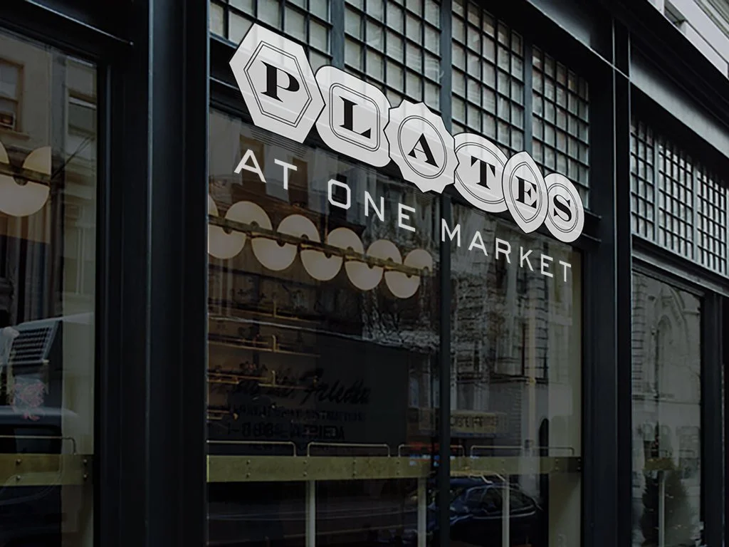 The project included the development of a name and visual approach to identify a multi-tenant food services property. The naming studies focused on words that celebrate food, convey variety and establish location. These descriptors were organized in categories and placed in a matrix to create unexpected combinations. Potential names were then identified and graphic approaches were developed for each. Ultimately “Plates at One Market” was selected.